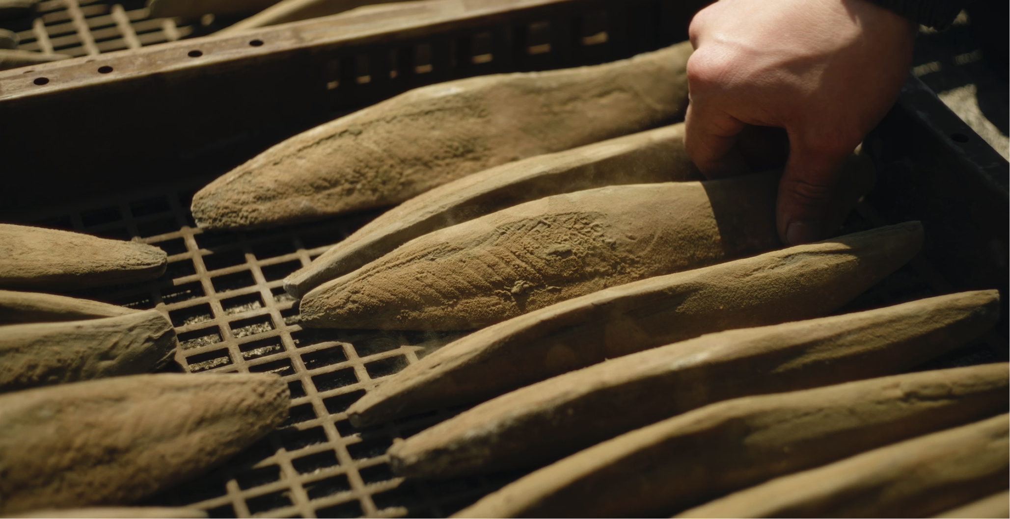 カビは鰹節の脂肪や水分を減少させ独特の香味、旨味を引き出します。